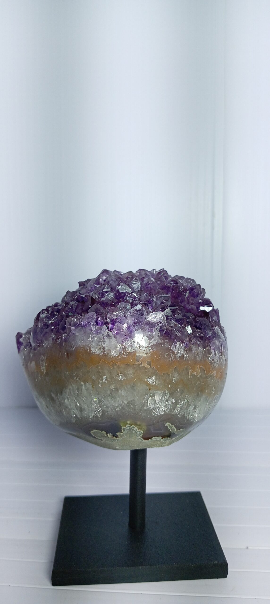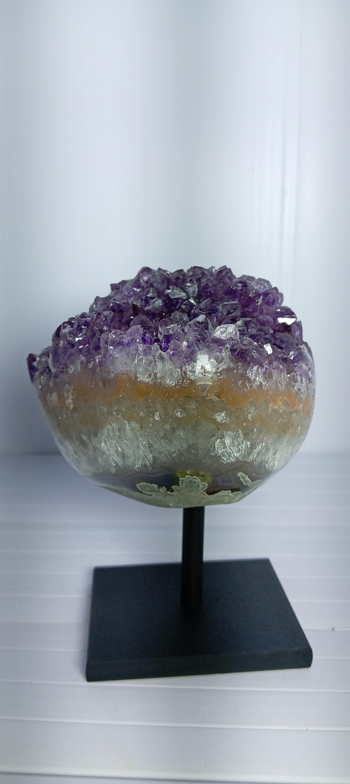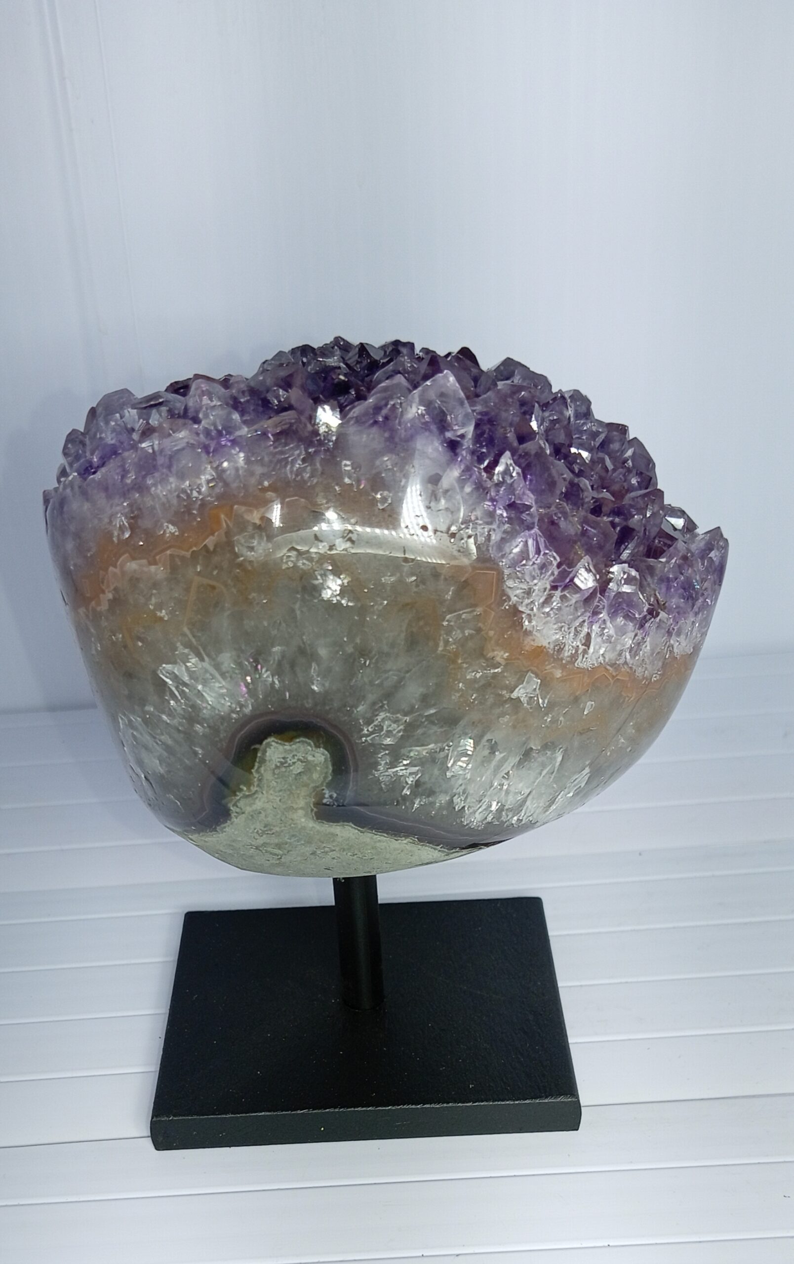 Geoda de Amatista de Alto Contraste con Borde de Ágata Pulida