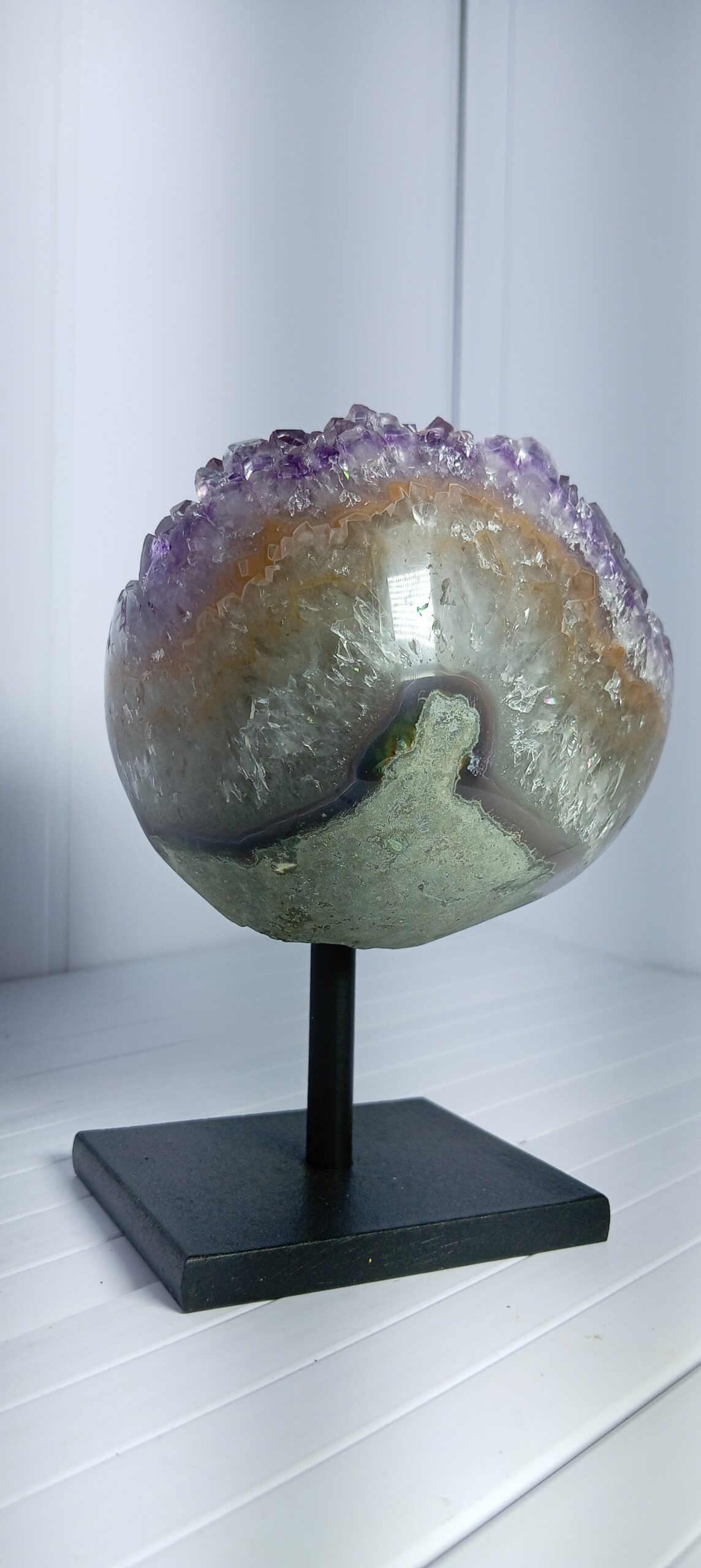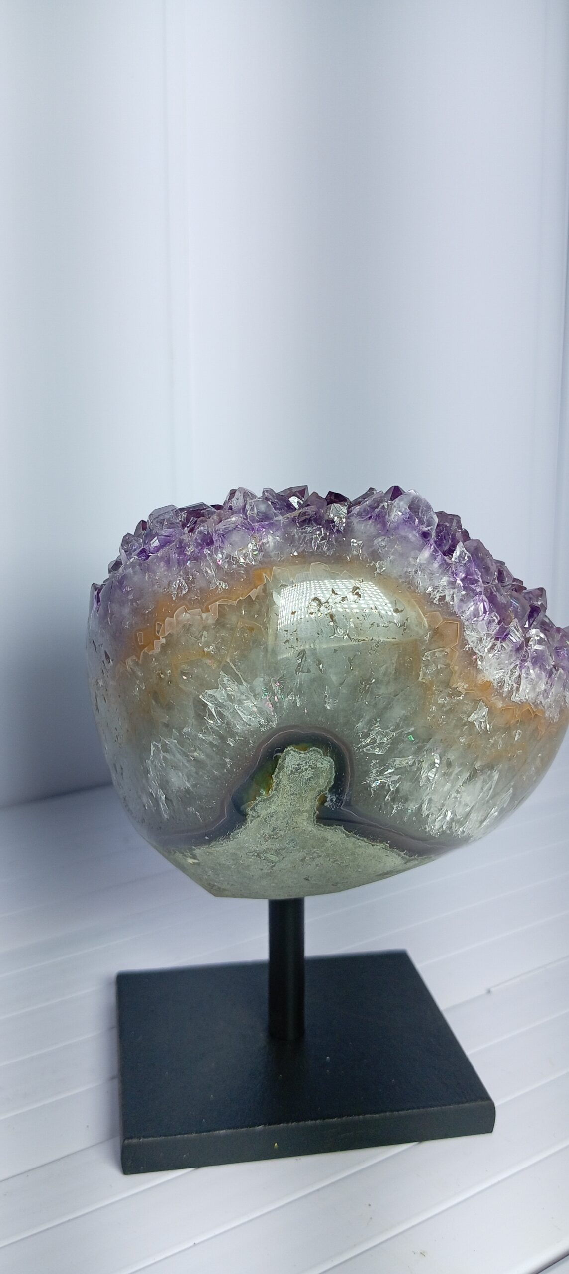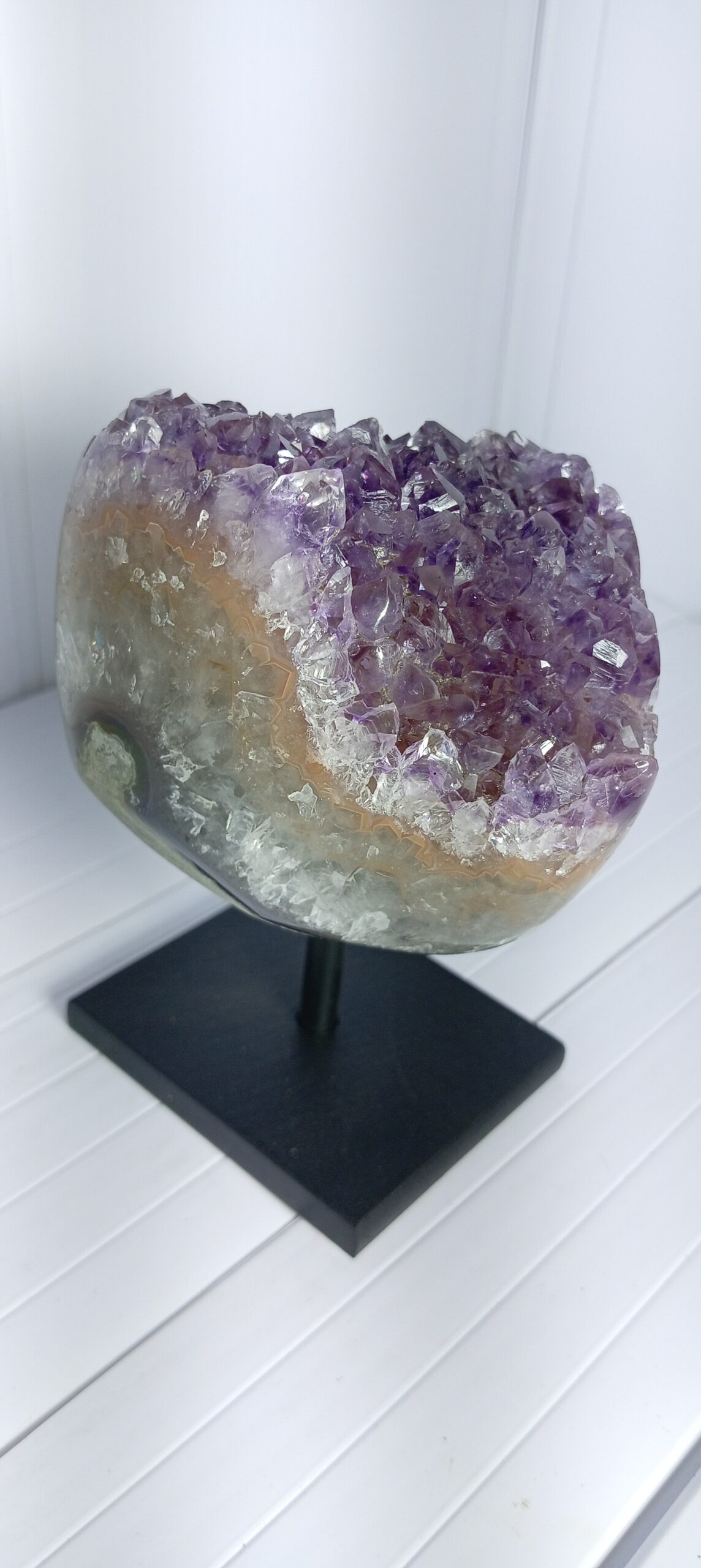Geoda de Amatista de Alto Contraste con Borde de Ágata Pulida